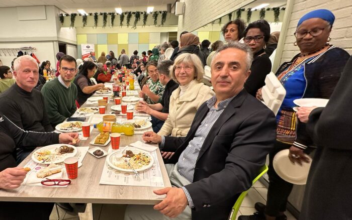 Burgerhart Amsterdam ve Kunst van het Samenleven’in organize ettiği kilise diyalog iftarınaAmsterdam Aker semt sakinleri, polis ve itfaiye memurları, Amsterdam belediye yetkilileri, farklı din ve etnik kökenden semt sakinleri, muhacirler, eğitimciler, semt evi yöneticileri, gönüllüler ile Hristiyan ve Müslüman din adamlarından oluşan 100 kişi katıldı.