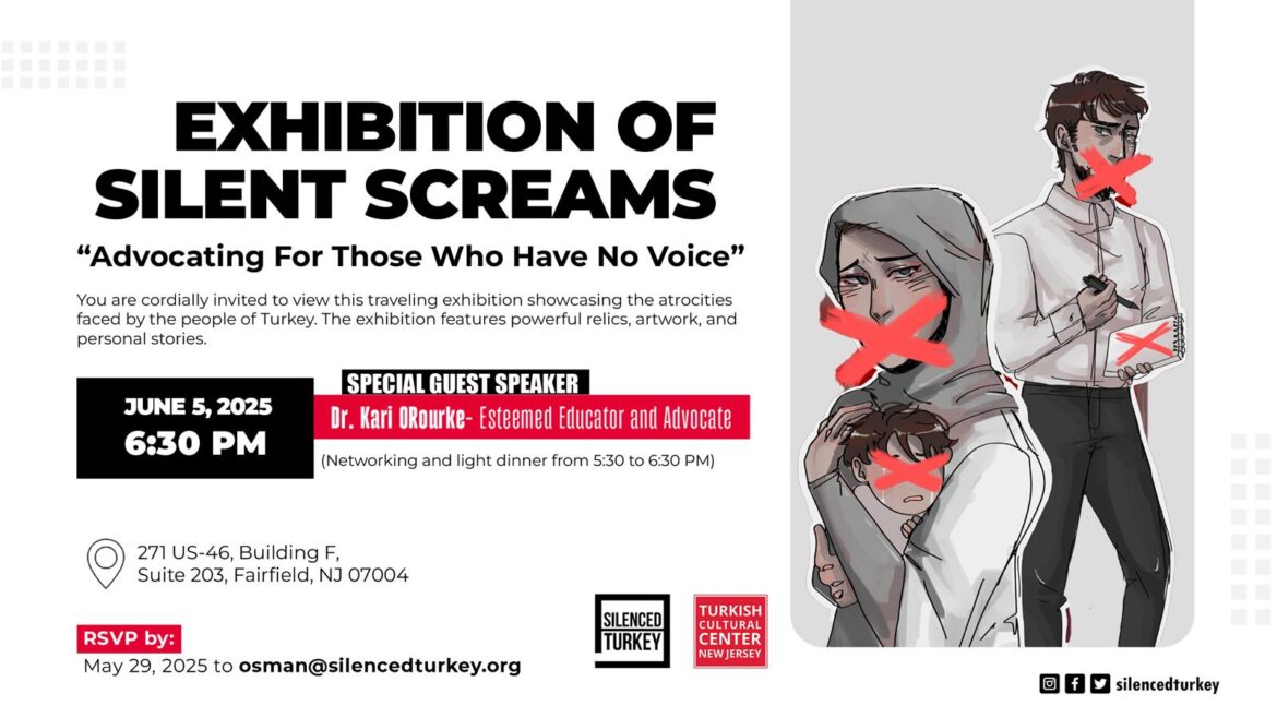 Advocates of Silenced Turkey (AST) ve New Jersey Türk Kültür Merkezi iş birliğiyle “Sessiz Çığlıklar Sergisi: Sesi Olmayanların Sesi Olmak” başlıklı etkileyici bir etkinlik düzenlendi. New Jersey Fairfield’da gerçekleşen programa gazeteciler, eğitimciler, insan hakları savunucuları ve sivil liderler olmak üzere yaklaşık 40 kişi katıldı.