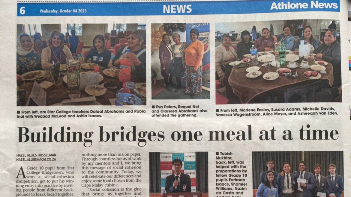 Cape Town Star Bridgetown’ın 10. Sınıf öğrencisi Tabish Muhtar, geçtiğimiz Mart ayında Turkuaz Harmoni Enstitüsü’nün Güney Afrika hükümetinin de desteğiyle organize ettiği “Daha Güçlü Topluluklar için Sosyal Uyum” yarışmasında, “toplu yemek servisi” projesi ile birinciliği hak etti.