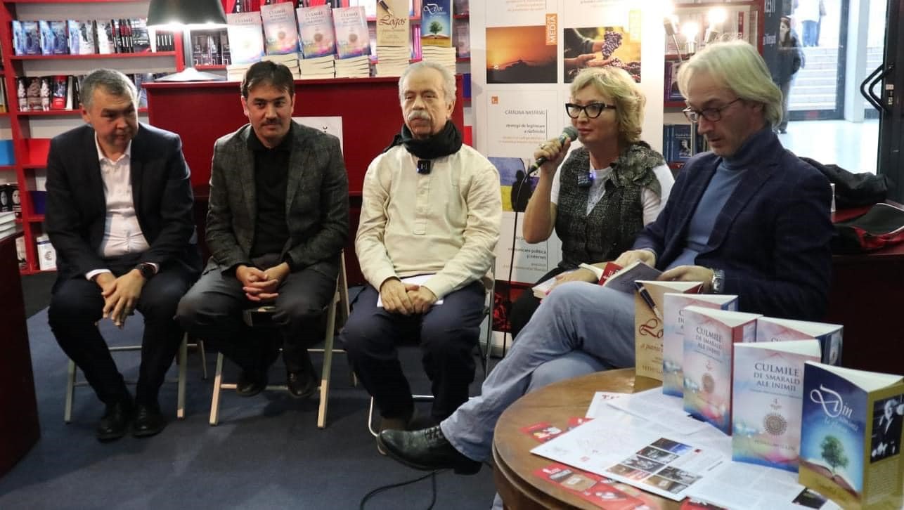 Fuardaki Tritonic Yayınevi’nin standında düzenlenen yeni eserlerin tanıtım toplantısında konuşan Ortadoğu uzmanı, dilbilimci Prof. Dr. George Grigore, SNSPA politik bilimler uzmanı Prof. Dr. Silvia Osman ve Tritonic Yayınevi Müdürü Bogdan Hrib, Gülen’in eserlerinin Romen okurlarına kazandırılmasının önemine dikkat çektiler.