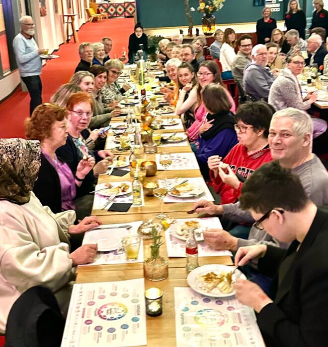 Gösterinin ardından misafirler, Burgerhart Amsterdam Vakfı ve Kunst van het Samenleven gönüllülerinin hazırladığı geleneksel Anadolu mutfağından sahur yemeğinde bir araya geldi. Hollandalı katılımcılar, Ramazan’ın manevi atmosferini hissederek sahurun sadece bir yemek değil, aynı zamanda bir dayanışma ve paylaşım anı olduğunu deneyimledi. Lezzetli yemeklerin yanı sıra sıcak sohbetler de geceye damgasını vurdu.