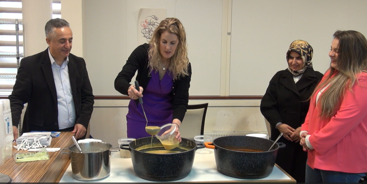Kuzey Hollanda Diyalog Koordinatörü Basri Doğan, etkinlikte bir sunum yaparak çalışmalar hakkında bilgi verdi. Doğan ‘’Bugün bizim için özel bir gün çünkü sizi vakfımızda ilk kez ağırlama fırsatı buluyoruz. Gönüllülerimizle birlikte toplumumuzun en önemli sorunlarından biri olan yalnızlığa dikkat çekiyoruz. Yalnız yaşayan komşularımızı ziyaret edip halini hatırını soruyoruz. Ve onlarla sohbet ediyoruz. Yalnız olmadıklarını hatırlatıyoruz’’ Sunumun ardından, Bakan Maeijer gönüllülerle birlikte çorbaları kaselere dodurdu ve çorba kaplarının üzerine isim etiketlerini yerleştirerek etkinliğe bizzat katılım sağladı.