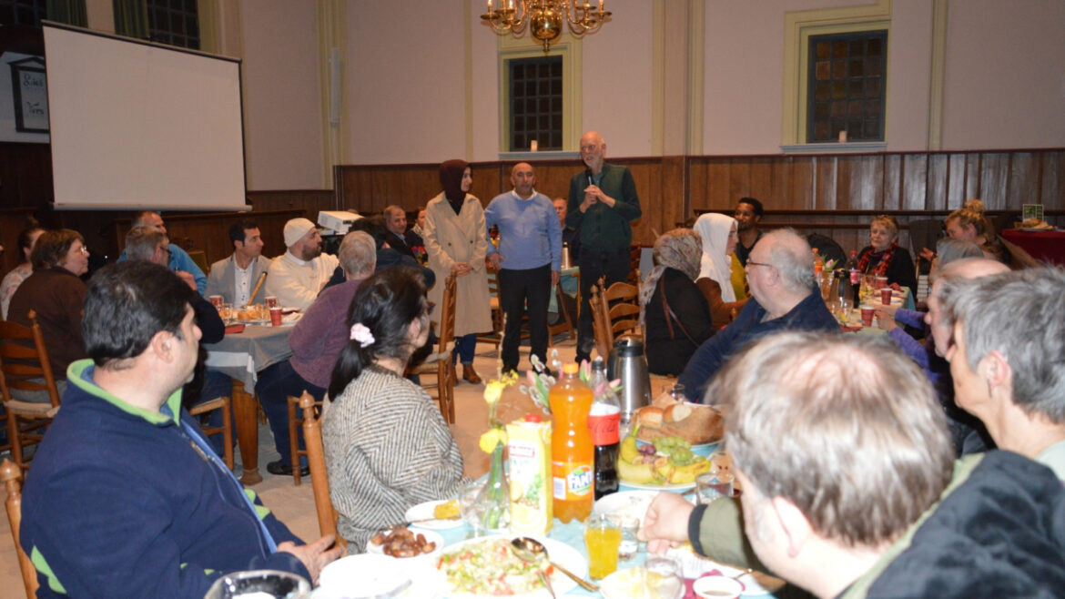 Burgerhart Amsterdam, Animo ve Kunst van het Samenleven gönüllüleri tarafından kilisede gerçekleştirilen iftar programında Müslümanlar ve farklı dinin mensupları bir araya geldi. Hollanda’da pandemi sonrası farklı semt ve evlerde verilen iftarlardan sonra Burgerhart Amsterdam, Animo ve Kunst van Het Samenleven yaşadığı toplumla diyalogu geliştirmek için 300 yıllık Krommonie Doopsgezind Zaanstreek Kilisesi’nde ilk defa iftar programı düzenledi.