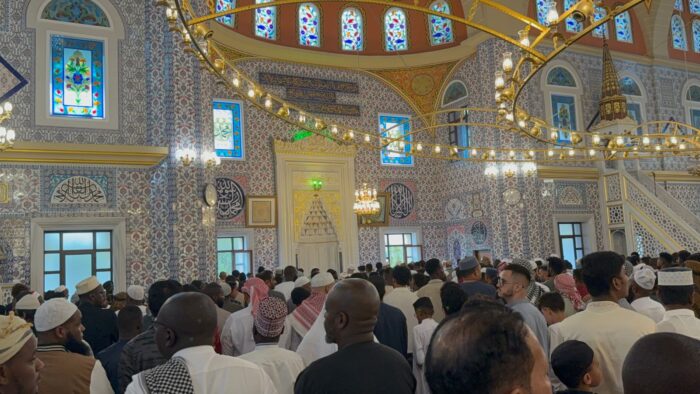 Bayram sabahı etkili olan yağış ve yoğun ziyaretçi akını nedeniyle cami içindeki alan hızla dolarken, yer bulamayan cemaat namazlarını caminin revakları altında ve avluda eda etti. Afganistan’dan Pakistan’a, Etiyopya’dan Somali’ye, Fas’tan Nijerya ve Hindistan’a kadar çok farklı coğrafyalardan gelen Müslümanlar, kendi geleneksel kıyafetleriyle bir araya gelerek Nizamiye’de küresel bir birliktelik sergiledi. Osmanlı mimarisinin zarafetini yansıtan çiniler, kubbeler ve hat sanatları, ziyaretçilerin yoğun ilgisiyle karşılanırken, bu eşsiz atmosfer bayramın manevi derinliğini daha da artırdı.