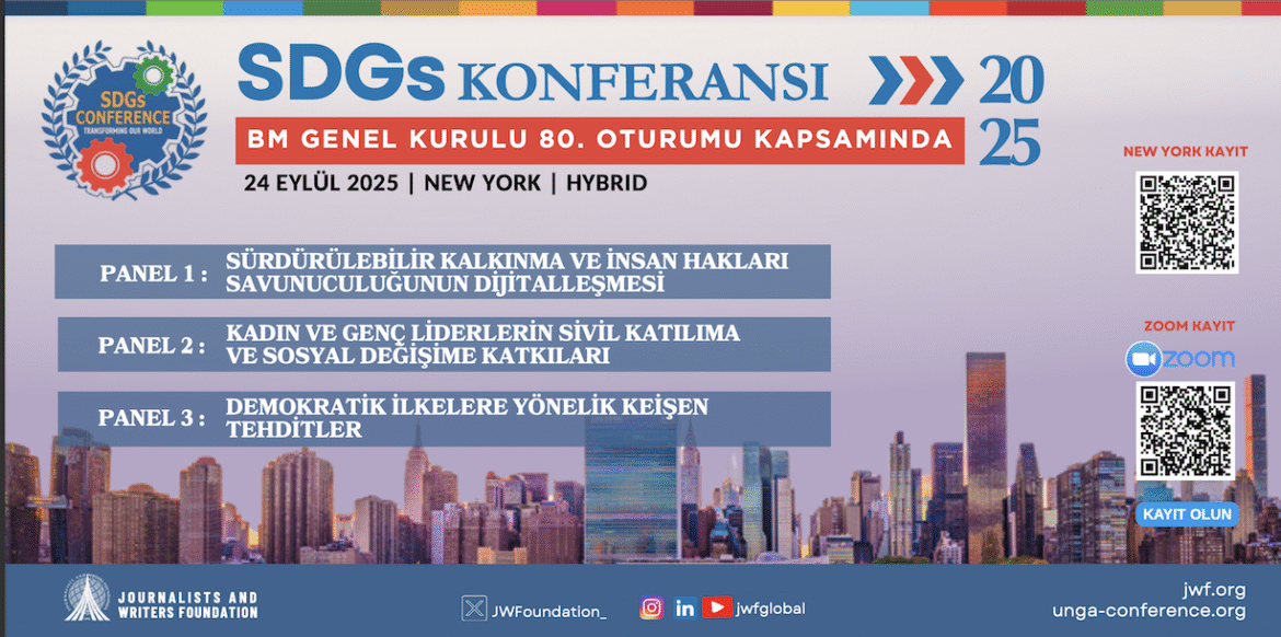 Gazeteciler ve Yazarlar Vakfı (GYV), bu sene 10.’sunu düzenlediği Sürdürülebilir Kalkınma Hedefleri (SDGs) Konferansı’nı “Dünyamızı Birlikte Dönüştürüyoruz” temasıyla New York’ta gerçekleştiriyor. 30 ülkeden 56 küresel ortağın iş birliğiyle organize edilen etkinlik, 24 Eylül 2025’te Birleşmiş Milletler Genel Kurulu’nun 80. Oturumu sırasında sahne alacak.